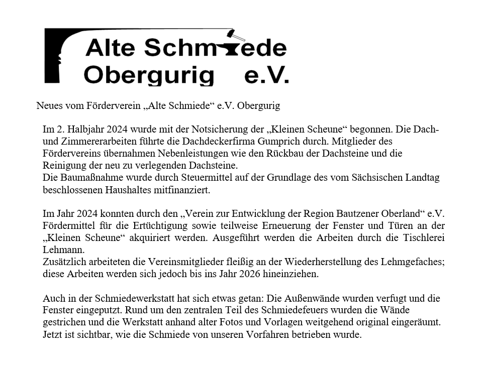 Neues vom Förderverein "Alte Schmiede Obergurig e. V."