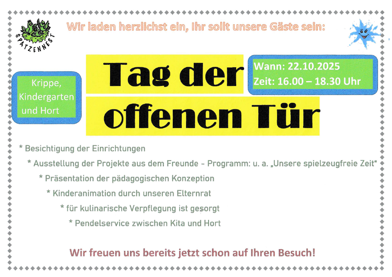 22.10.2025 | Tag der offenen Tür | KiTa Spatzennest, Hort | Flyer |