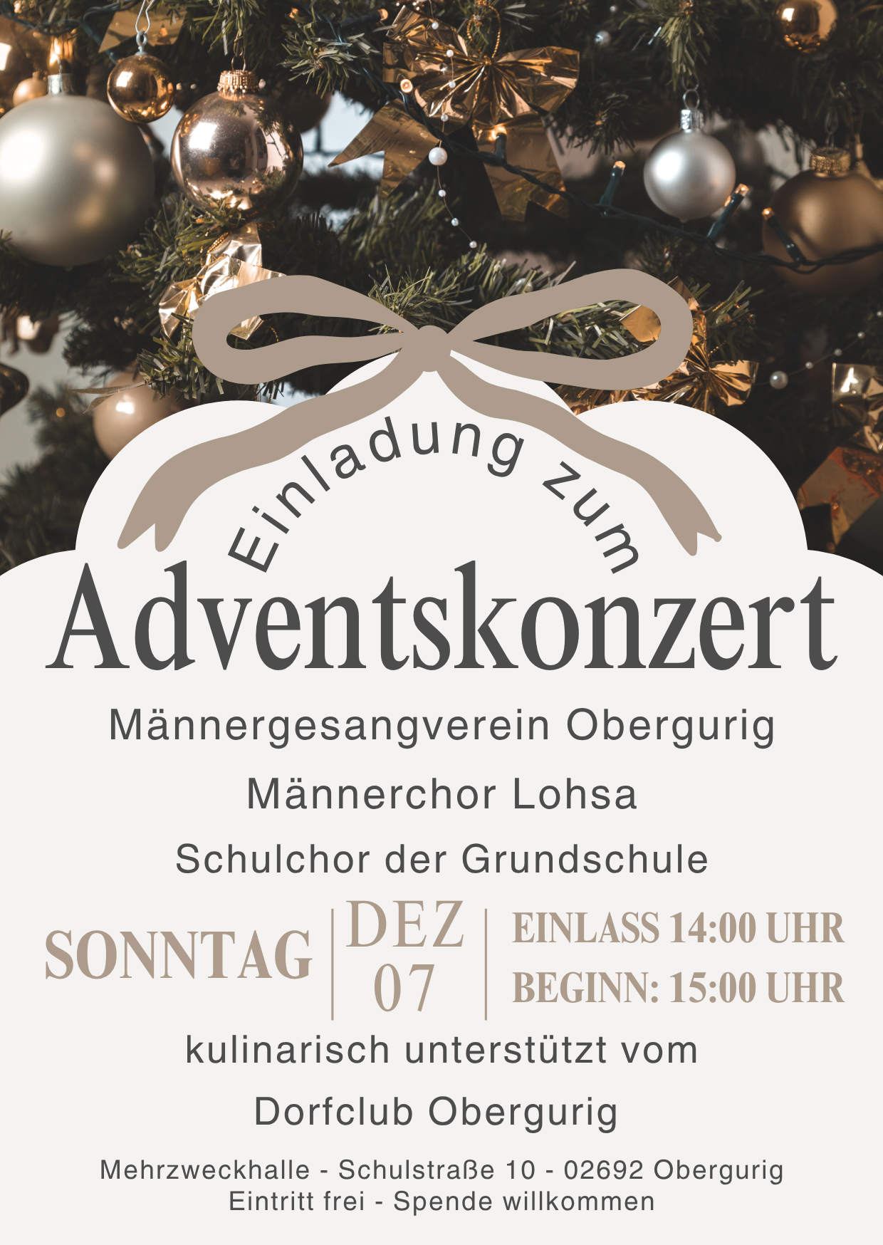 | 07.12.2025 | Adventskonzert Männergesangverein Obergurig mit Schulchor und Gästen | Sporthalle, Obergurig | Flyer |